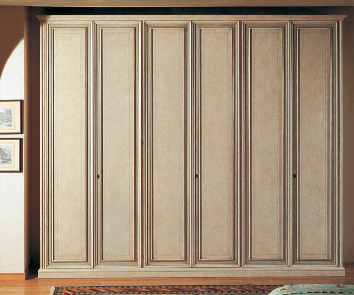 Armario lacado con 6 puertas. Armario de estilo clásico adecuado para hoteles y habitaciones en casa. Hecho enteramente del panal. Recubierto con laca acabado especial en pan de oro o plata. El interior está hecho de madera de nogal Tanganyika. Los estantes y cajones incluidos.