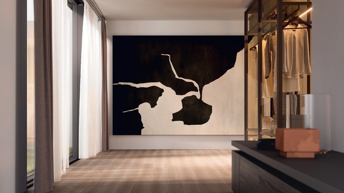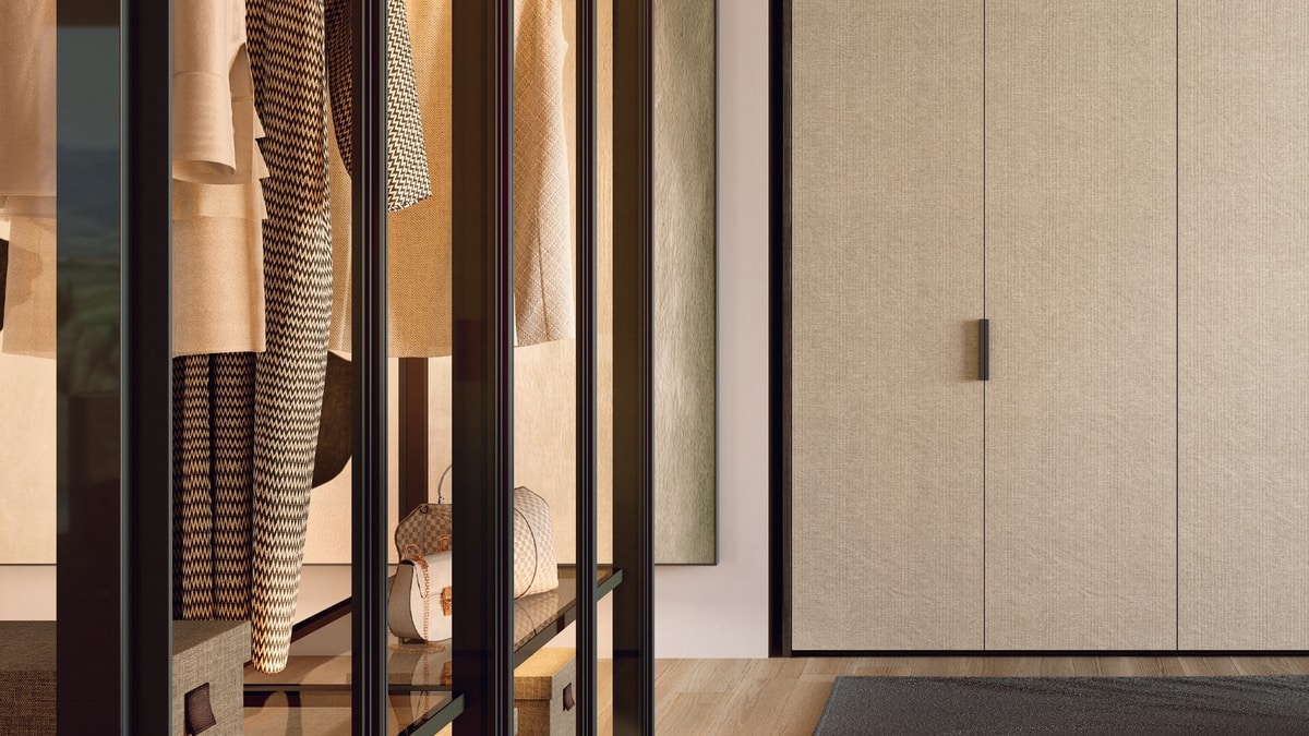 El sistema de vestuario Elli evoluciona continuamente con nuevas soluciones estéticas y funcionales, ofreciendo la máxima flexibilidad de diseño. Su estructura modular permite configuraciones personalizadas, adaptándose perfectamente a cualquier espacio arquitectónico. Los paneles laterales con marco, que incluyen opciones de vidrio, paneles traseros, bases y estantes, se combinan con diferentes tipos de puertas (con bisagras o corredizas), mientras que los acabados varían desde enchapados de madera hasta superficies texturizadas y materiales refinados como el vidrio, transformando los armarios en elegantes vitrinas. Cajones, herrajes internos y accesorios completan una oferta sofisticada que armoniza funcionalidad y diseño en cada espacio.
