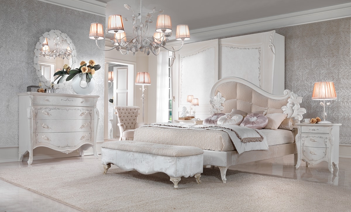 Armario de estilo clásico, con estructura de madera lacada con decoraciones artesanales. Equipado con 2 puertas correderas.