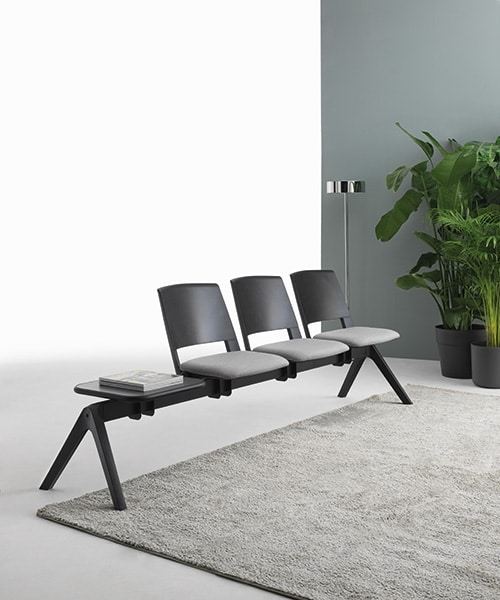Clio se convierte en un banco y completa las posibilidades de aplicación de un producto diseñado para satisfacer los requisitos más diversos. Instalada sobre un travesaño y equipada con tres tipos de bases, es una solución práctica y compacta para las salas de espera. El tablero añade funcionalidad a la composición de los asientos.