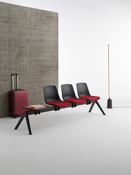 Java en la versión de banco que completa la familia de productos implementando totalmente la lógica de un sistema integrado para satisfacer todas las necesidades funcionales. Instalada sobre un travesaño y equipada con tres tipos de bases, es una solución práctica y compacta para las salas de espera. El tablero añade funcionalidad a la composición de los asientos.