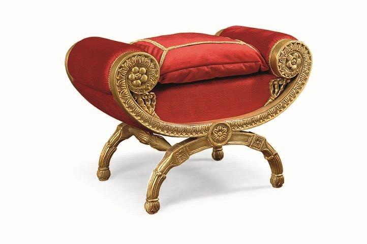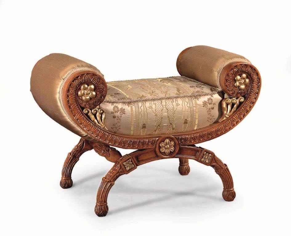 Taburete-banco en madera maciza tallada a mano, hecha de estilo clásico de lujo, ideal para hoteles.