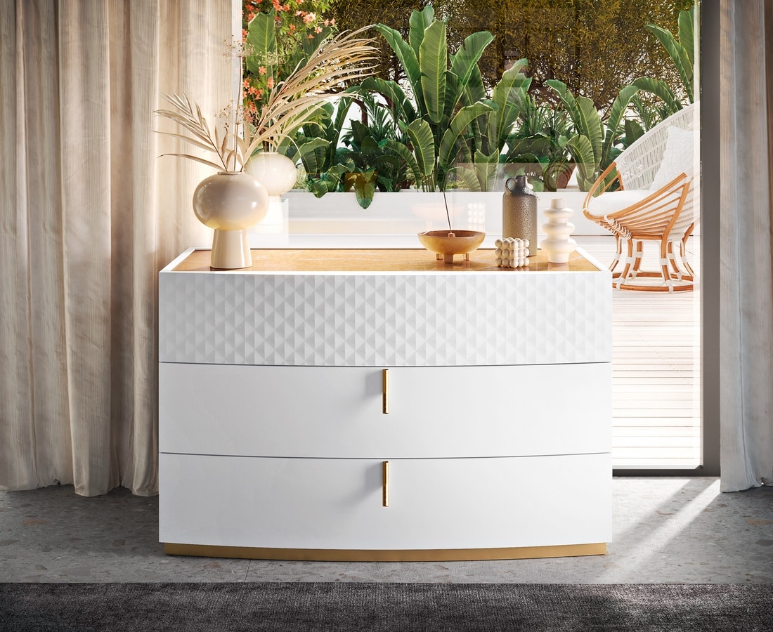 Modernos cajonera y mesas de noche en acabado lacado blanco