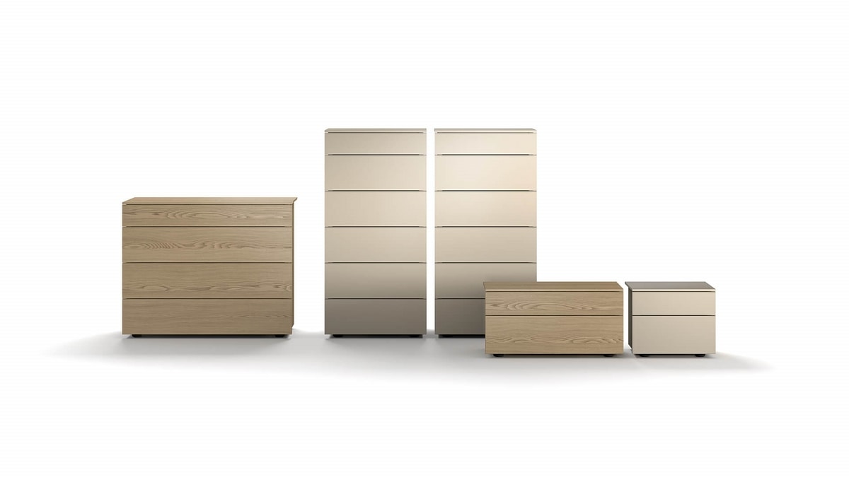Wide presenta una apertura lateral, siendo los paneles frontales más anchos que la estructura. La tapa tiene un espesor de 1,2 cm. El primer cajón superior tiene una altura inferior. Línea de mesitas de noche y cómodas con gran flexibilidad compositiva. Se pueden combinar con otros complementos. Estructuras, encimeras y frentes de cajones están disponibles en los acabados Elli. Los cajones son personalizables con fondo de tecnopiel, divisiones internas de almacenamiento. Cajoneras desaceleradas antichoque, sistema de autoinstalación con desbloqueo rápido, regulación de altura. Amplia libertad dimensional: 6 alturas, 5 anchos, 2 profundidades estándar, personalizado.
