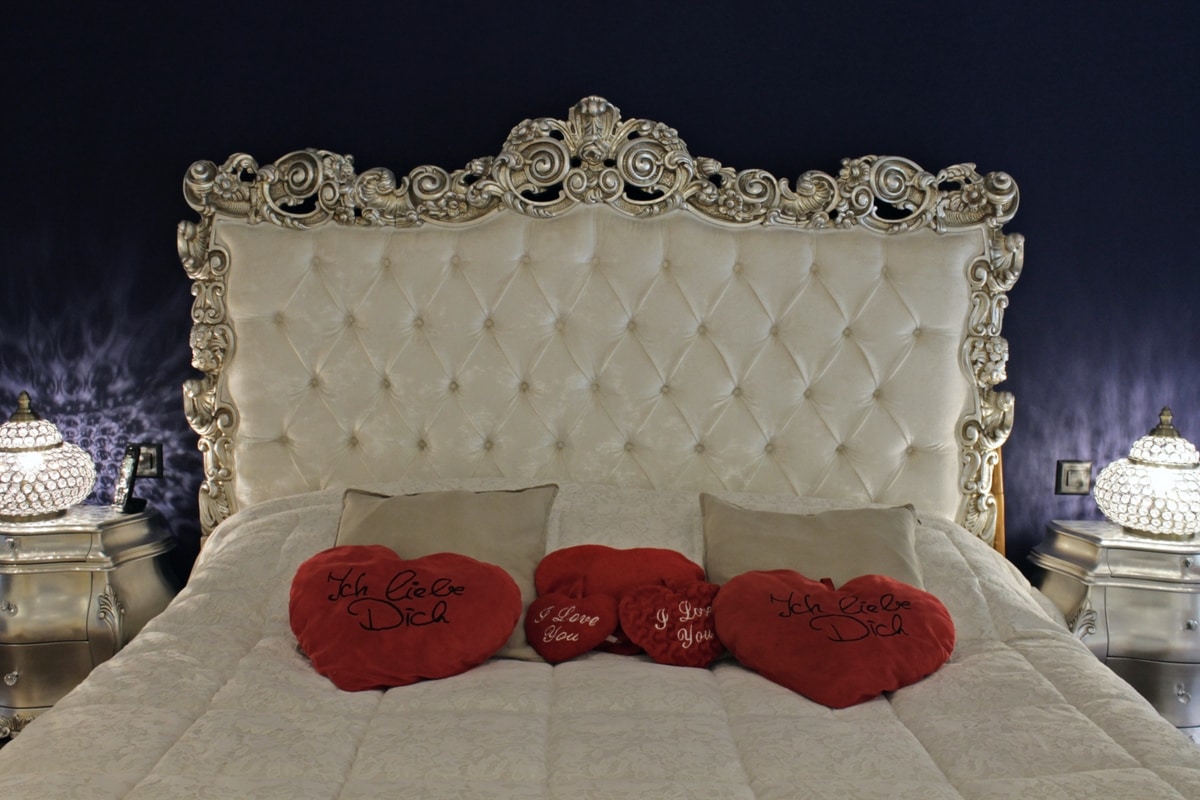 Productos similaresLujoso dormitorio principal a medida, opulento juego de dormitorio rey victoriano clásico barroco Luis XV con rica decoración también en el pie de cama, suites de dormitorio de lujo italianas hechas a mano 100% MADE IN ITALY by ORSITALIA. Los juegos de cama de madera maciza tallada a mano Ambassador KingSize y SuperKingSize son lo mejor de la producción de lujo de los artesanos de Orsitalia. Orsiitalia ofrece para el diseño de interiores del dormitorio clásico de Ambassador, pintura dorada y hoja de plata personalizada y tapicería personalizada con mechones hechos a medida en la cabecera de cama grande y botones a mano en forma de diamante también en el pie de cama barroco de Ambassador. Orsitalia, gracias a su habilidad en la producción de muebles de dormitorio exclusivos clásicos de lujo, diseño italiano y producción italiana, ofrece para la personalización una amplia selección de terciopelo y seda italianos de lujo, junto con cueros de plena flor para la decoración exclusiva y lujosa del dormitorio principal. Disponible también con base Tarima tapizada y Baúl.
