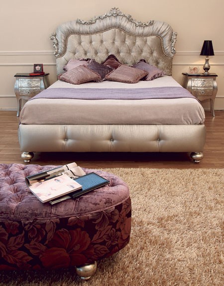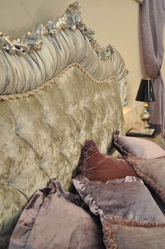 Lujo clásico cama con cabecero tallados a mano, en bucles con Swarovski.