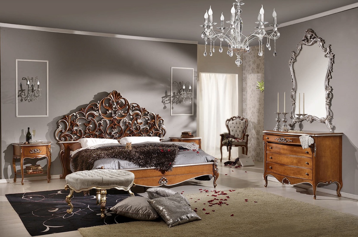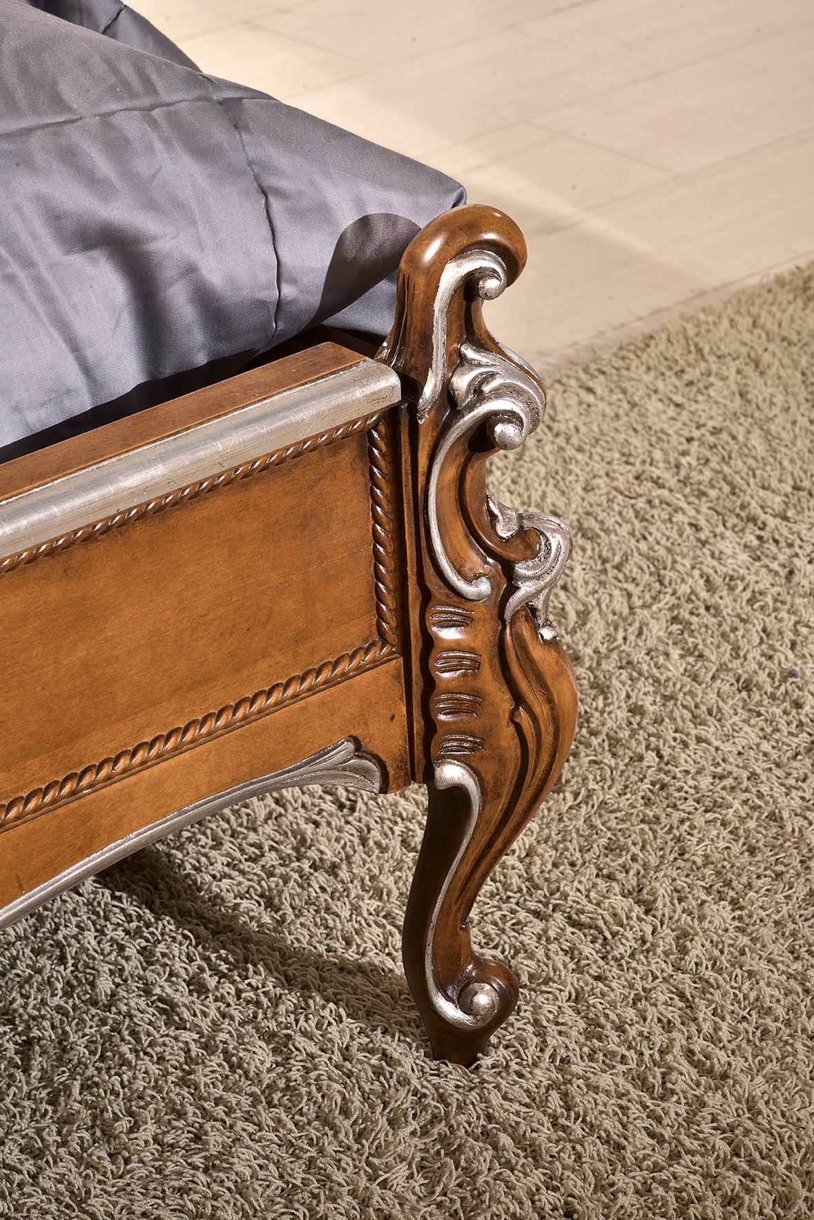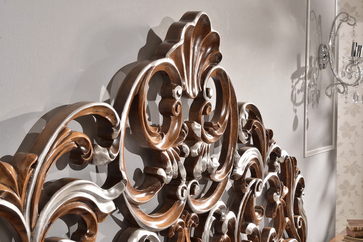 Cama doble clásica con cabecera tallada