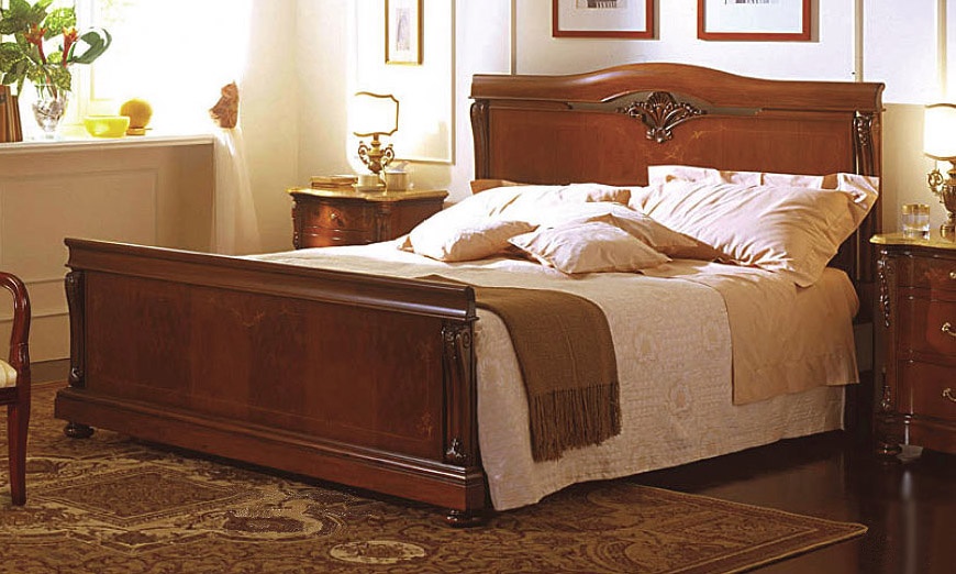 Cama en madera de nogal, con incrustaciones en el estilo clásico de lujo