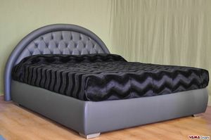 Cama con cabecero redondo con proceso capitonnè y marco tapizado.