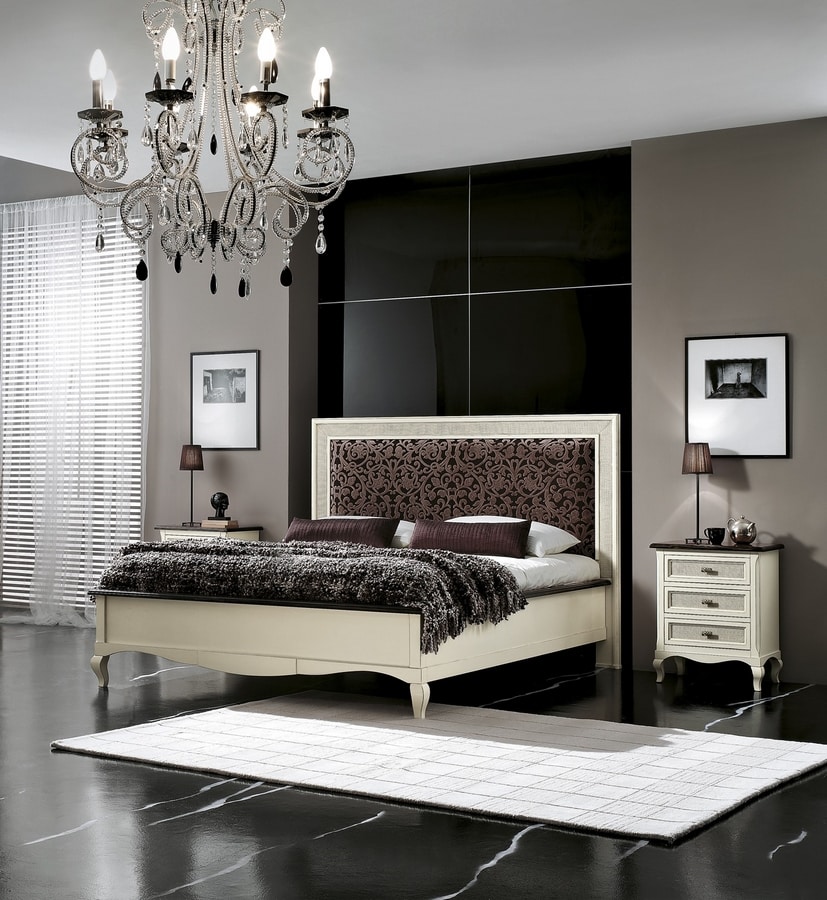 Cama lacada con cabecero tapizado