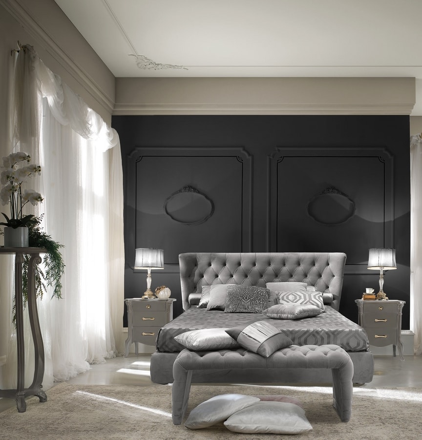 Cama con acolchado de capitonné, con somier o cajón. Disponible en diferentes tamaños.