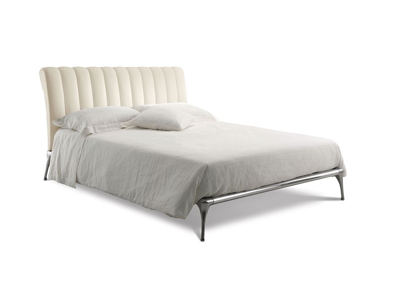 Cama con estructura de aluminio, cabecero acolchado con patrón vertical