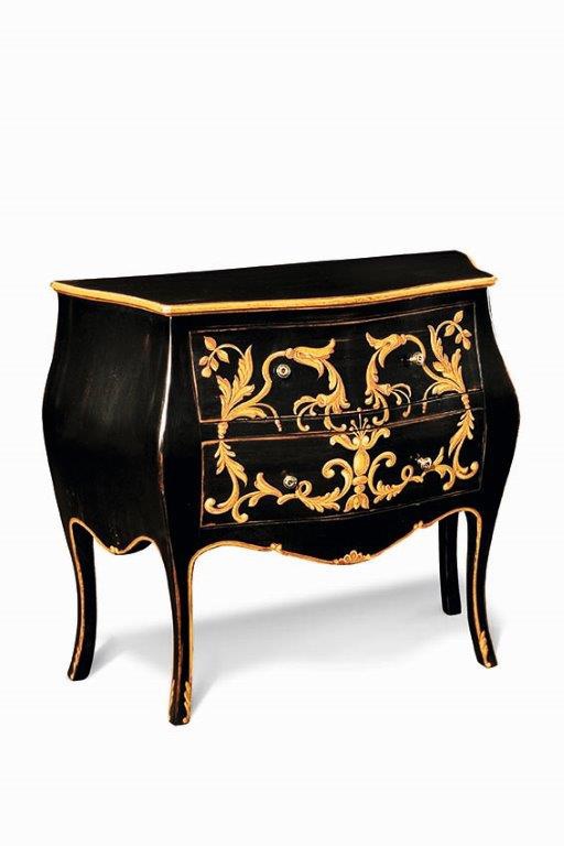 Cómoda con 2 cajones, de madera decorada con motivos florales, ideal para hoteles de lujo.