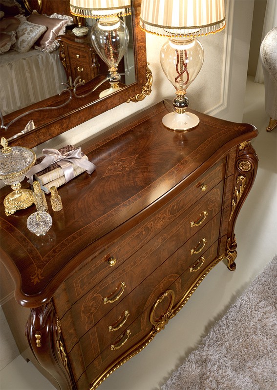 Cómoda en madera tallada, de estilo neoclásico de lujo, para el dormitorio
