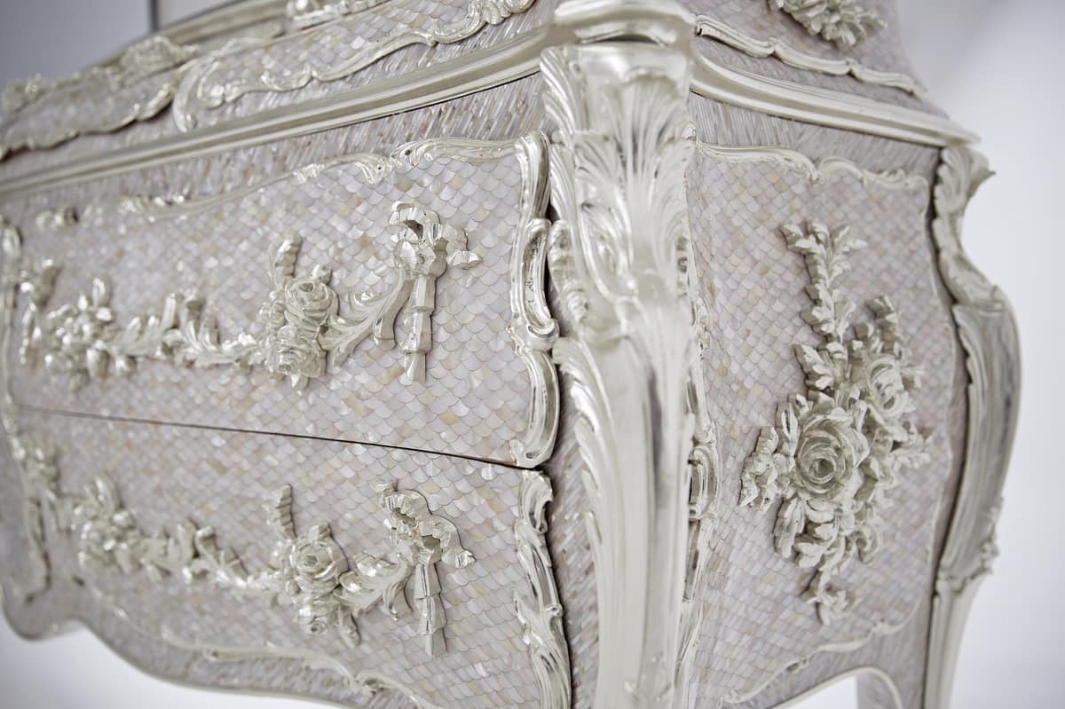 Cómoda con incrustaciones de oro blanco puro