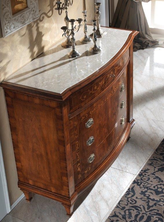 Solicitar precios Productos similaresCómoda de nogal en forma con la talla y la tapa de mármol Botticino.