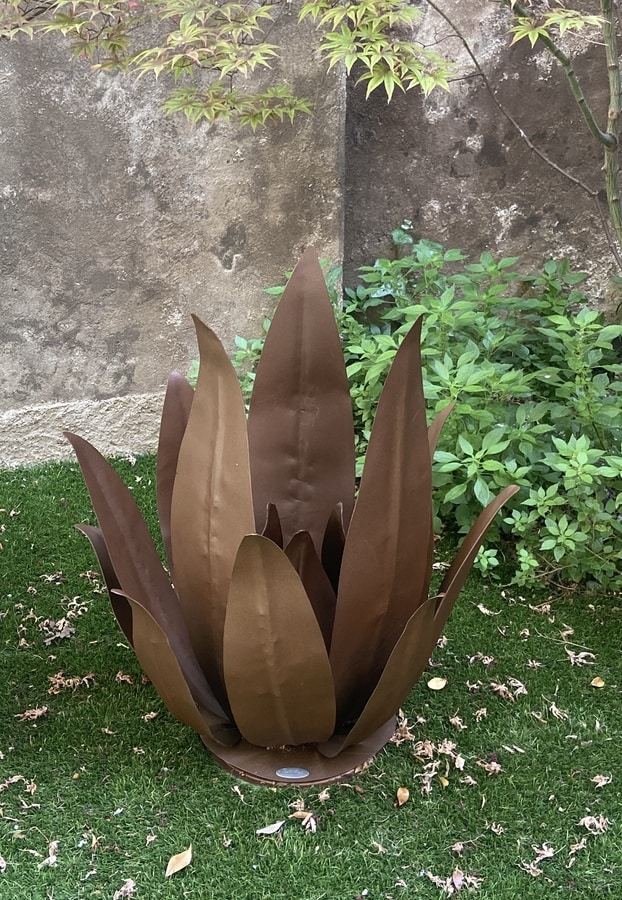 Mobiliario decorativo de jardín exterior en metal elaborado artesanalmente. Acabado del metal: óxido.