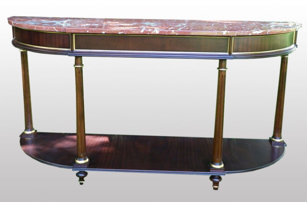 Consolle de madera de caoba con tapa de mármol rojo, de estilo clásico