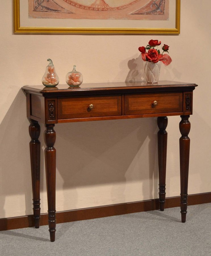 Consola clásica de lujo en madera, con 2 cajones