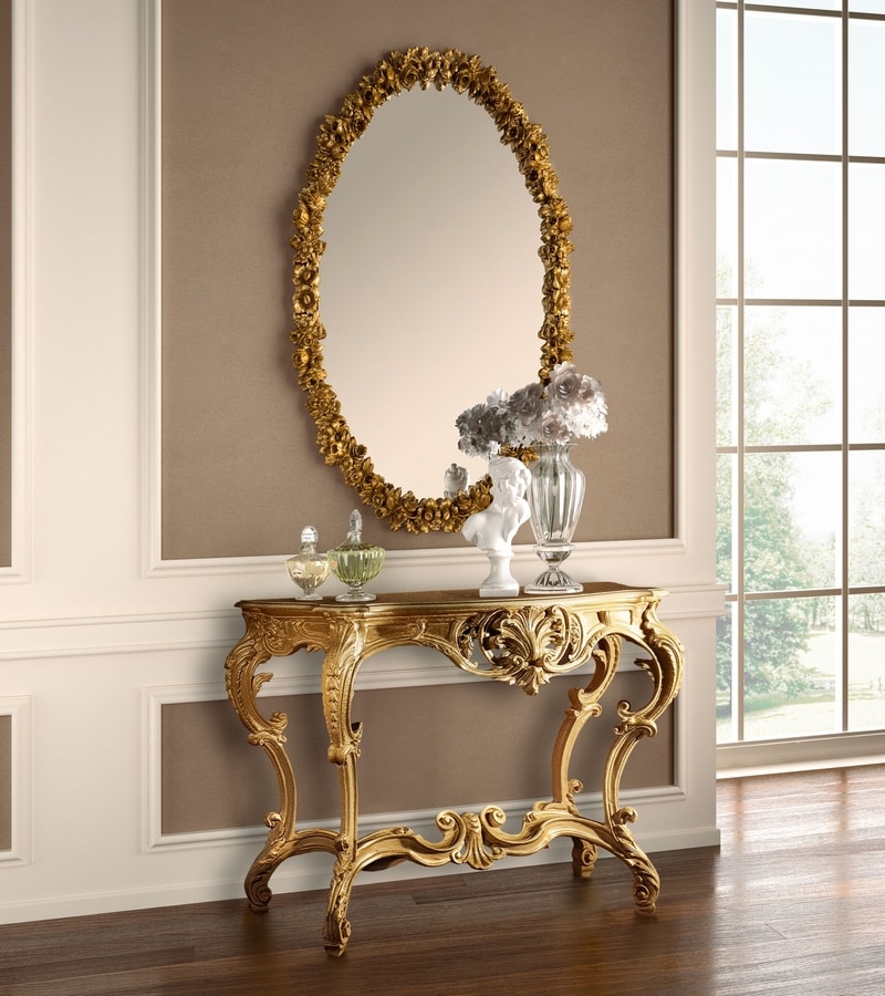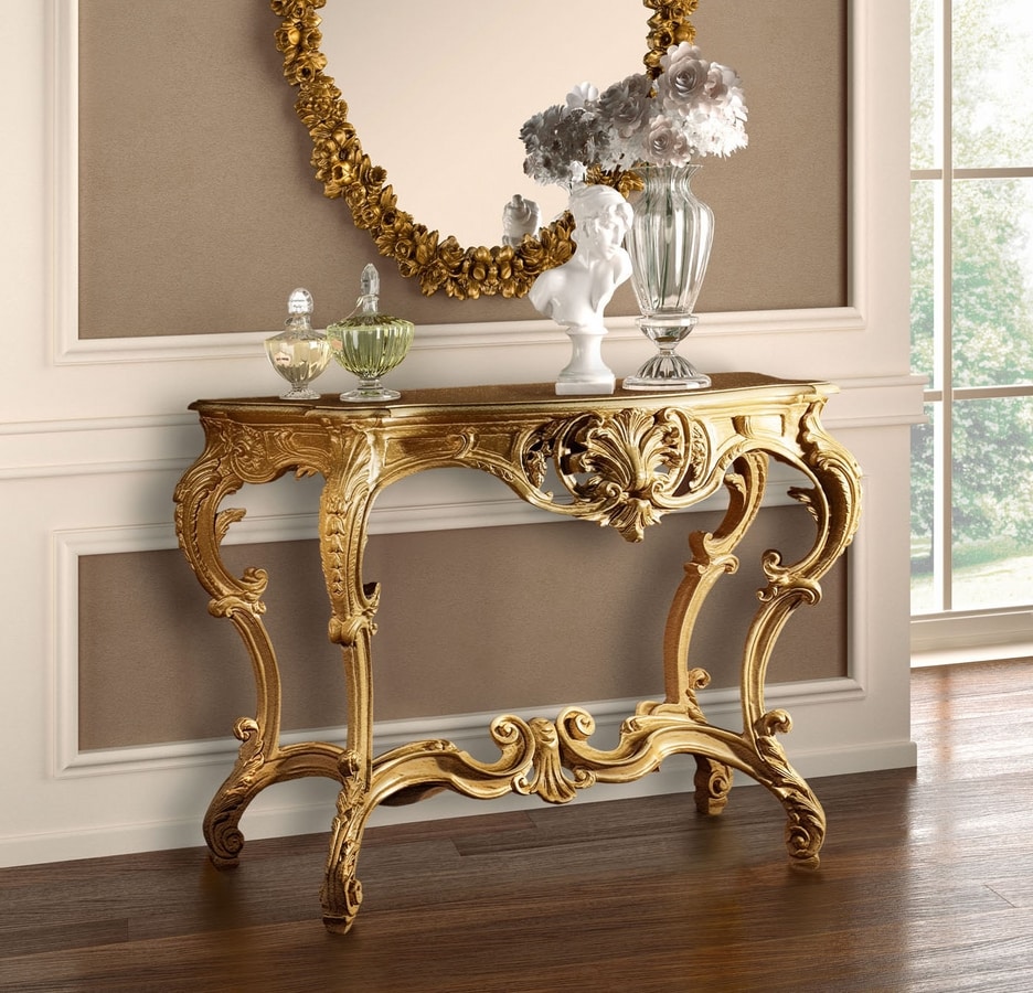 Consola en madera tallada, íntegramente en pan de oro.