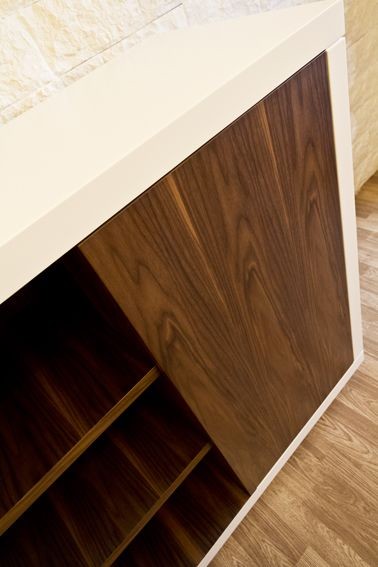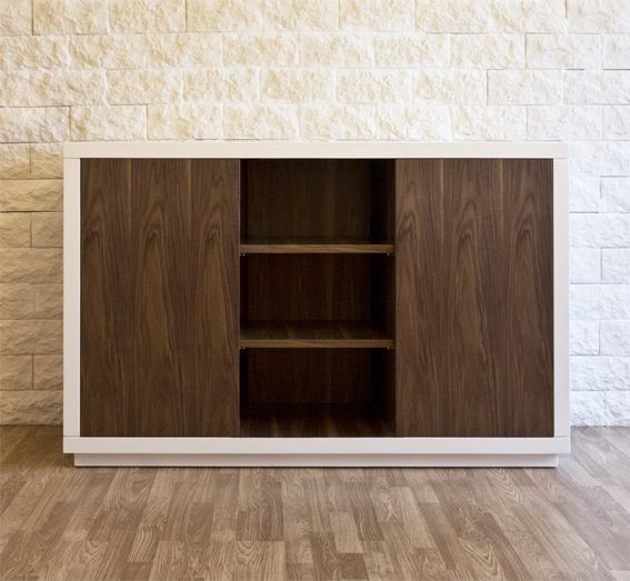 Aparador de madera lacada, con estantes de madera de nogal móviles