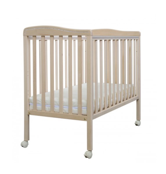 Cuna totalmente de madera, con ruedas, diseñadas con un estilo sobrio, ideal para uso en el hogar y viveros.