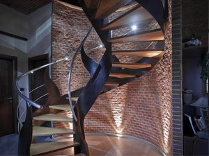 Escalera helicoidal con barandilla iluminada