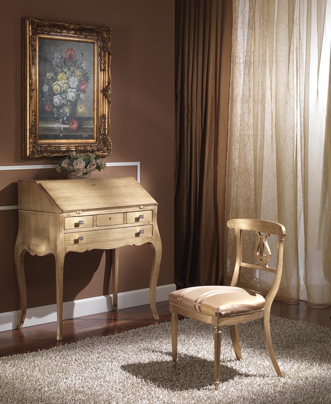 De lujo Escritorio clásico con solapa, acabado pan de oro
