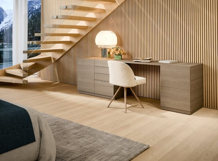 La propia estructura de este sistema de aparador permite utilizarlo como escritorio.