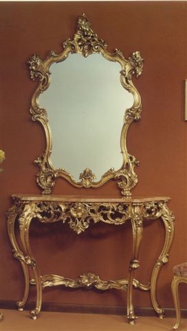 Espejo con marco tallado y acabado de la hoja de oro . Adecuado para ambientes de estilo clásico .