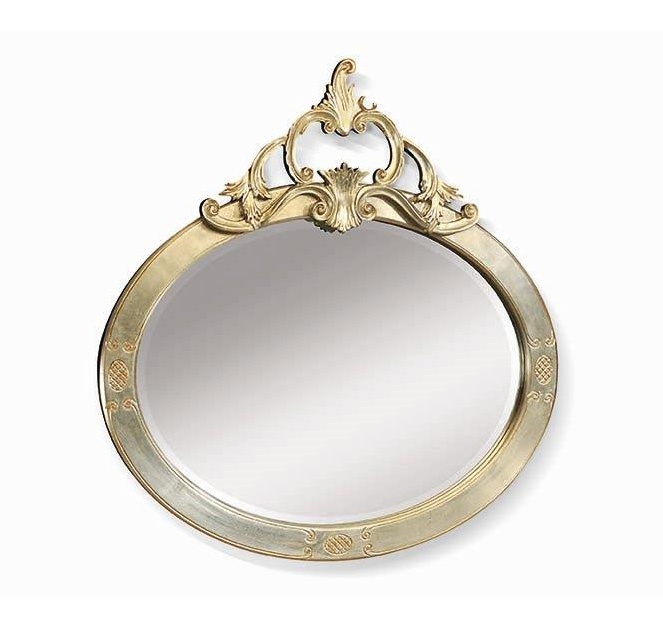 Espejo oval con tallas florales, hecho en estilo clásico.