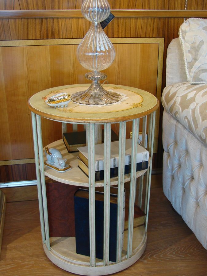 Rotatorio estantería con ruedas desnudado y lacado alto decorado.