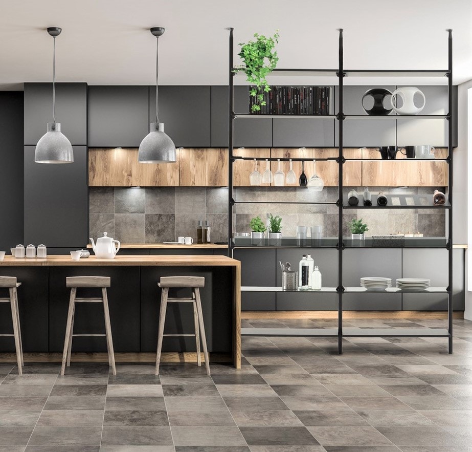Estantería modular, con pared o techo de aluminio anodizado o esmaltado en vertical.