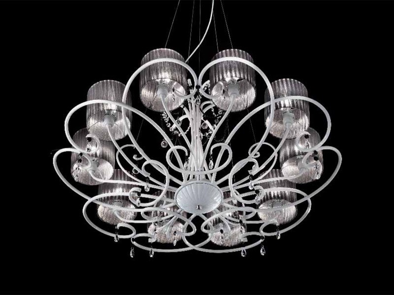 Araña con marco de metal totalmente trabajada a mano, altavoces y organza de cristal cae SW.