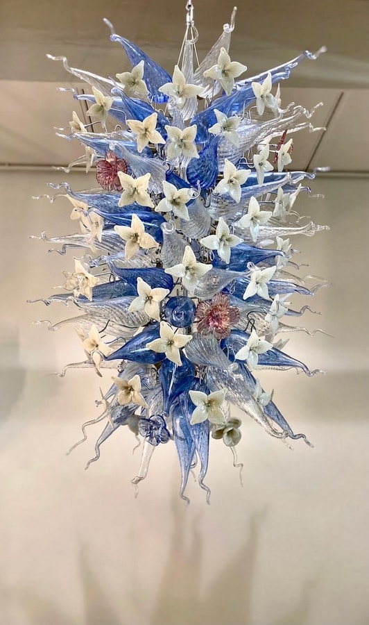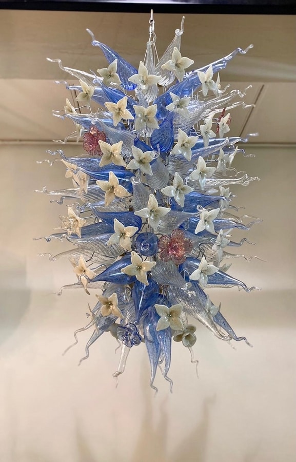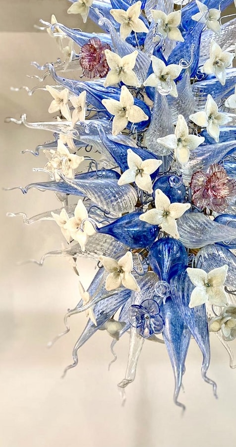 Suspendidas entre el arte y la iluminación, estas eclécticas esculturas de luz y vidrio están hechas a medida, cada una es una obra única. Un himno al color, la naturaleza y la creatividad.