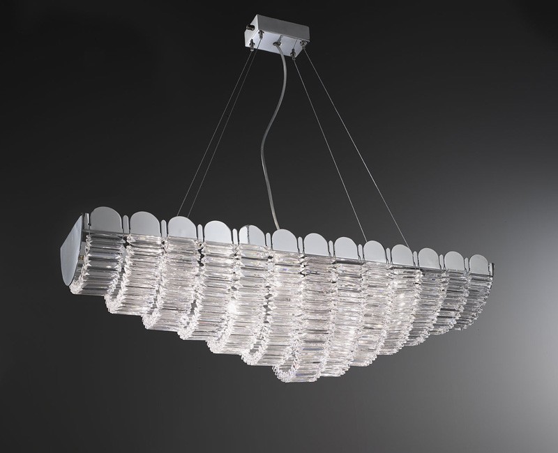 Lámpara de techo con estructura metálica con acabado en baño de cromo. Cristales disponibles en colores transparente, rojo, negro y ámbar.