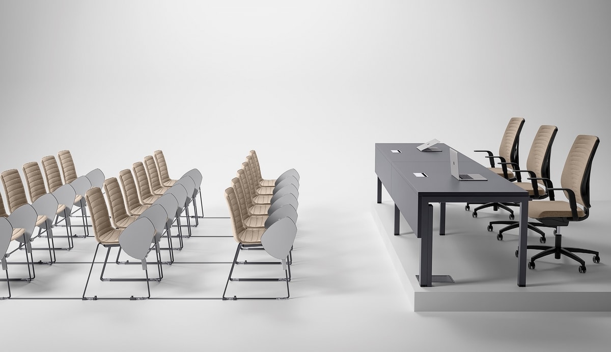 Campus es un sistema de escritorios elegantes y de líneas limpias que se pueden personalizar con cuatro tipos de herrajes de diferentes formas, acabados y tamaños, junto con una amplia variedad de accesorios. Todos los escritorios son modulares para responder a sus necesidades específicas.