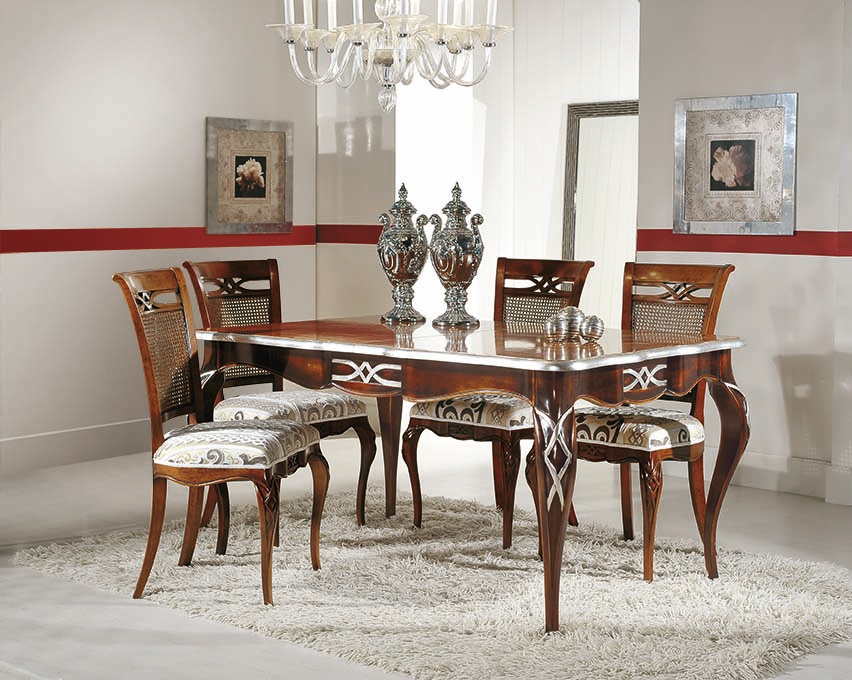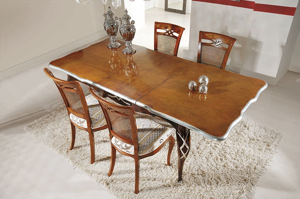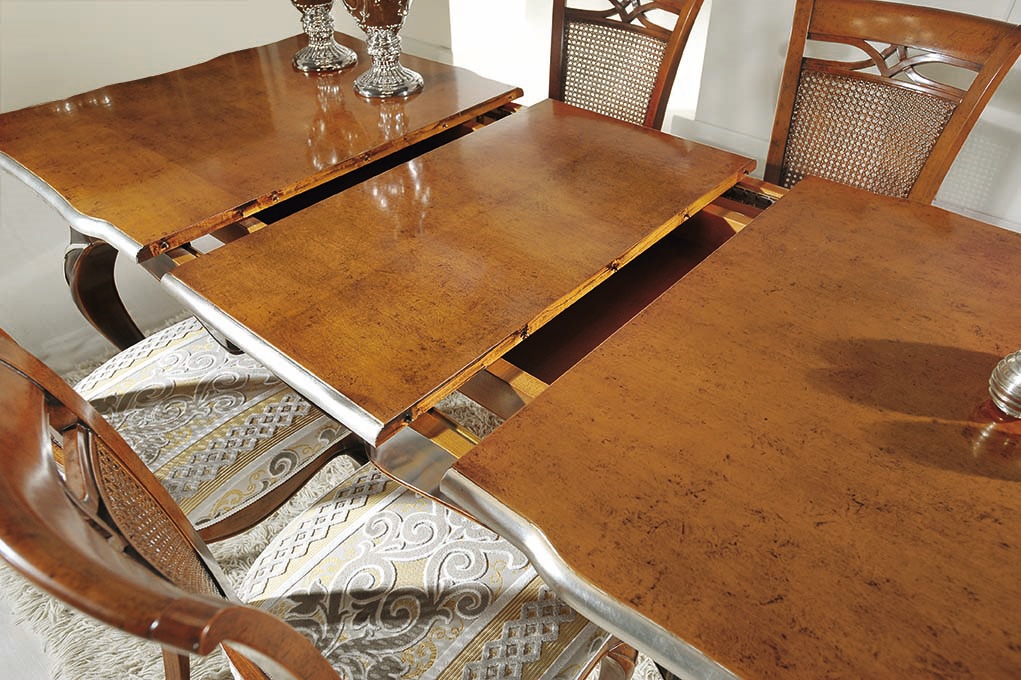 Mesa extensible rectangular con decoraciones de hojas de plata