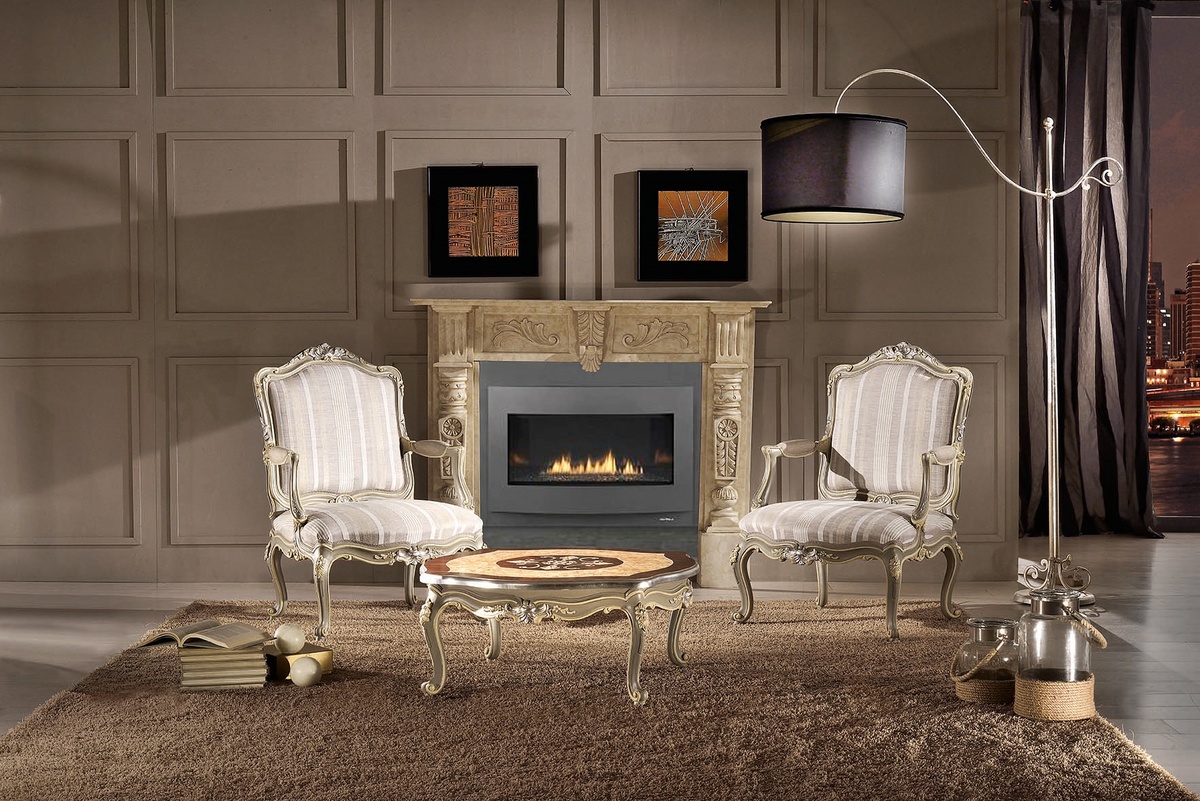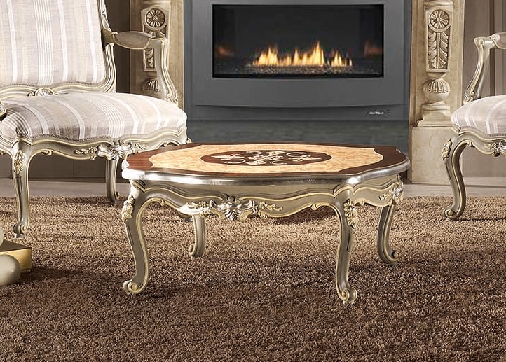 Mesa de centro tallada e incrustada a mano, en estilo clásico
