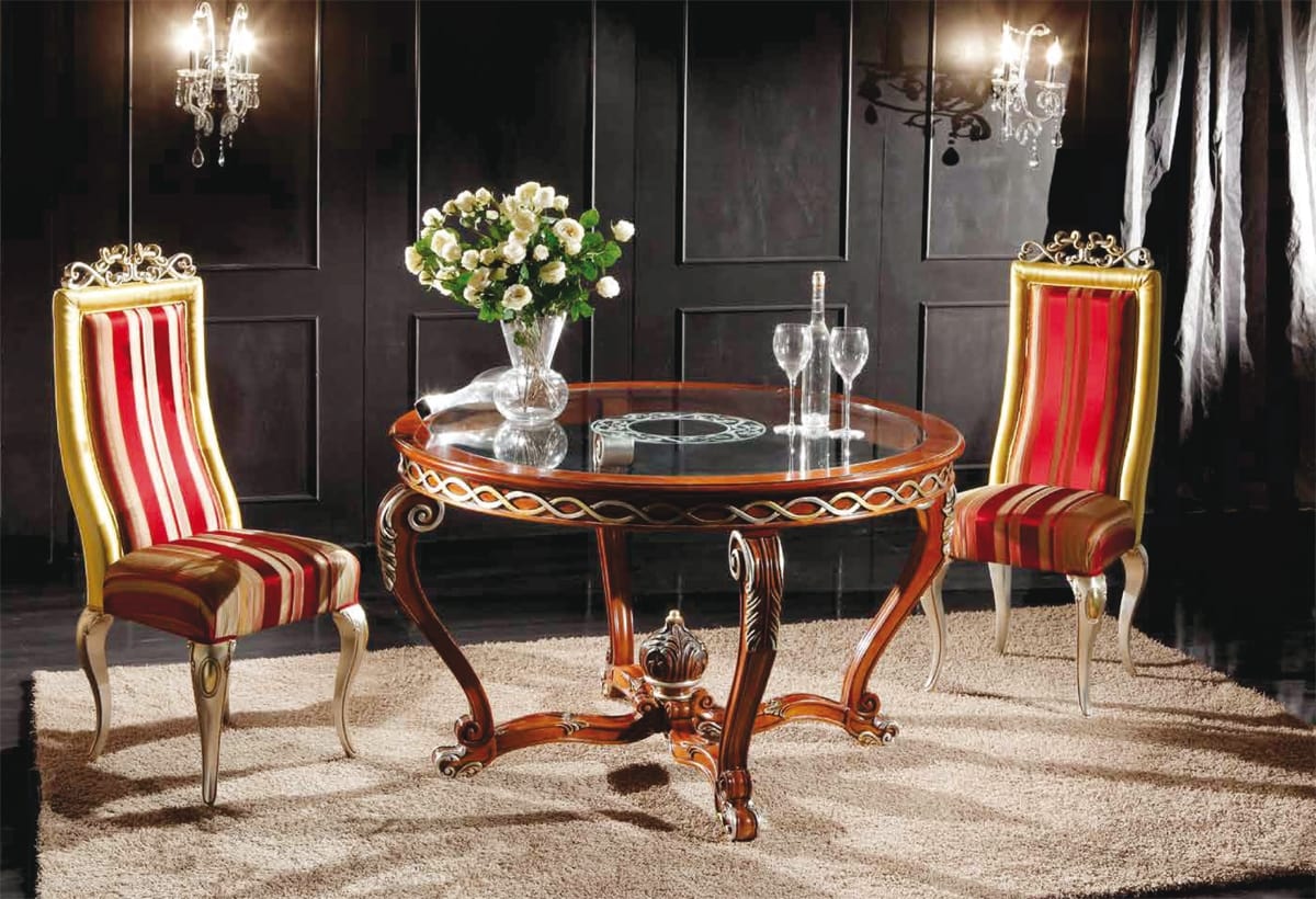 Mesa redonda clásica con tapa de cristal