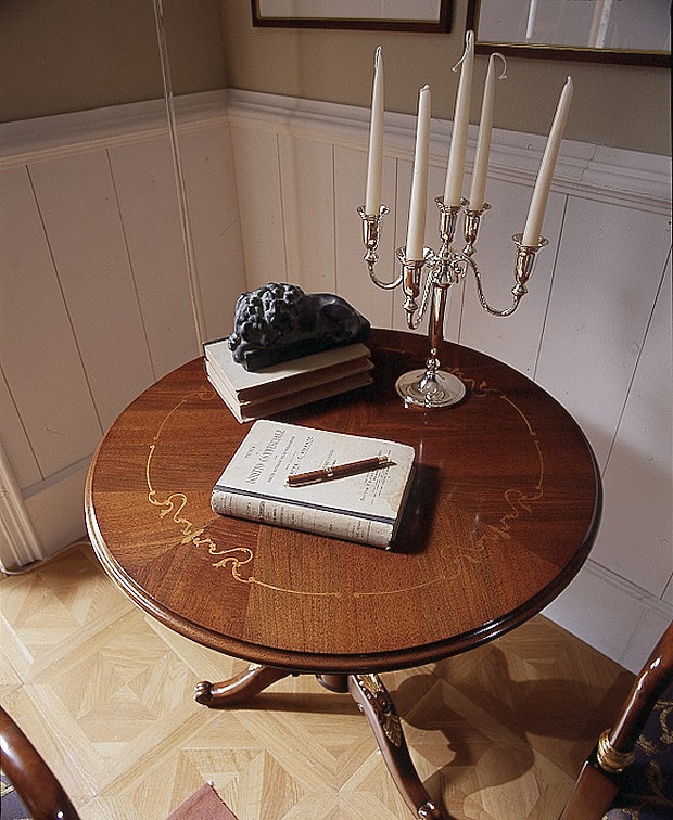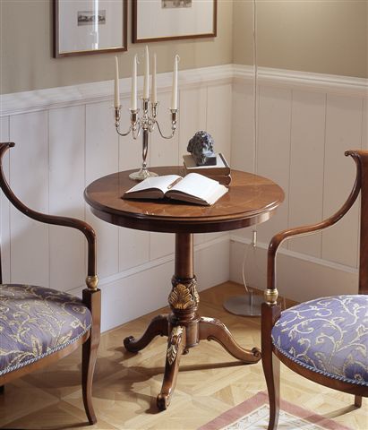 Solicitar precios Productos similaresMesa redonda con incrustaciones de nogal, con tallado, decorado con dorado.
