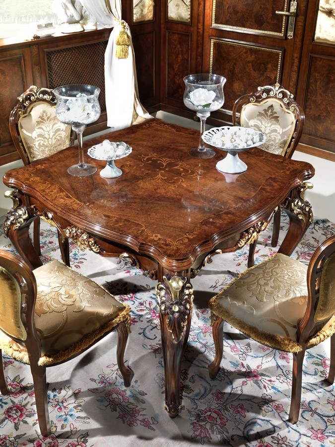 Mesa cuadrada en madera tallada, para salones ricos