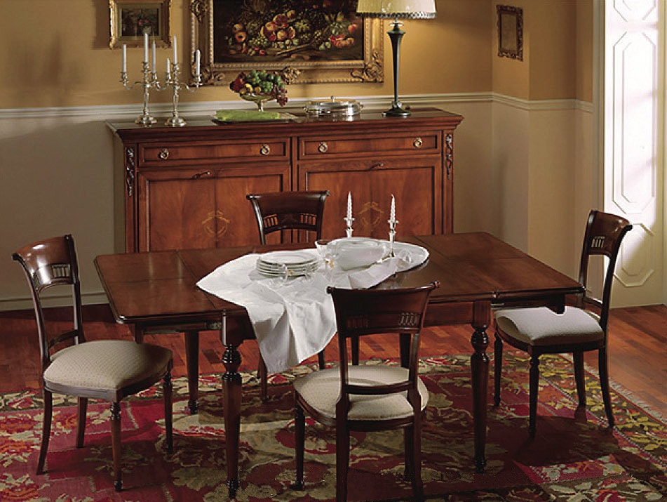 Mesa cuadrada extensible, clásico, con cajón