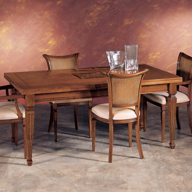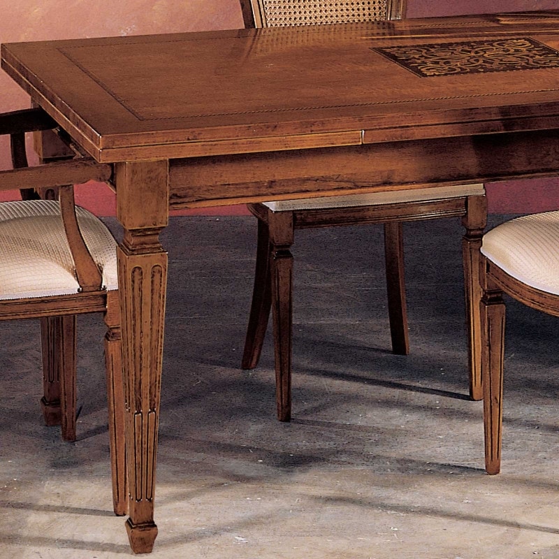 Mesa con extensiones laterales extraíbles, estilo clásico.