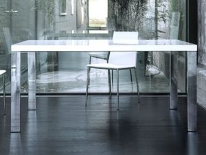 Mesa rectangular con base de acero cromado, tapa en PET