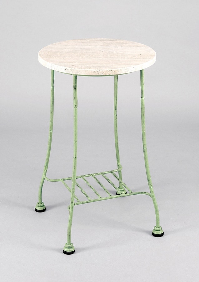 Mesa redonda con tapa de mármol Travertino, acero inoxidable AISI 304, lacado en polvo.