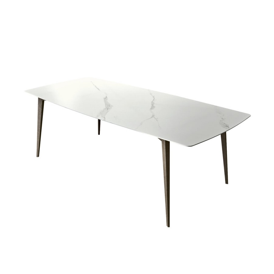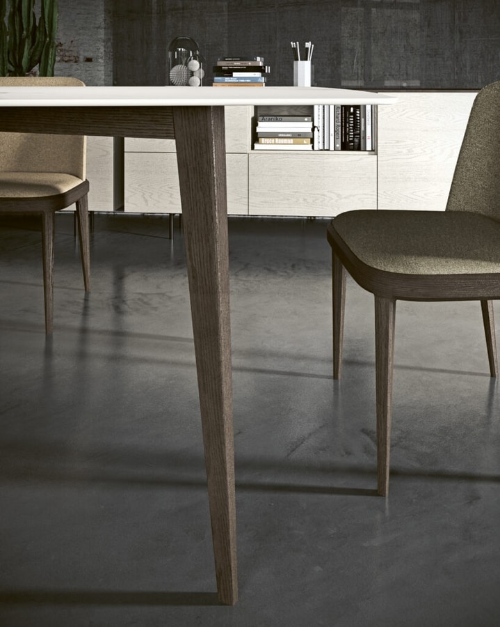 Una mesa de inspiración casi rétro adquiere fuerza e innovación en la elección de los materiales, en la sabia reinterpretación de las formas.
