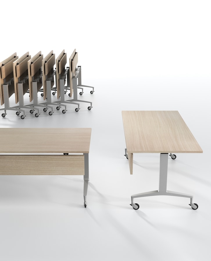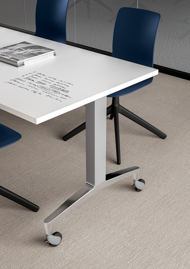 Solicitar precios Productos similaresUlisses AR es la mesa rectangular diseñada por IBEBI que combina diseño refinado y multifuncionalidad. Equipado con una encimera abatible y ruedas, Ulisses AR está diseñado para moverse fácilmente para que el espacio de trabajo pueda reconfigurarse rápidamente. Esta flexibilidad hace que la mesa Ulisses sea especialmente adecuada para amueblar todos los ambientes donde se necesita una gestión dinámica del espacio, como salas de reuniones y conferencias, ambientes dedicados a eventos, aulas y espacios de enseñanza. Pero gracias a su elegante diseño, Ulisses también es perfecto para oficinas ejecutivas y presidenciales, donde aporta, al mismo tiempo, prestigio y versatilidad. El pie de fundición a presión de aluminio pulido o pintado y los numerosos acabados disponibles para las patas y la tapa, hacen de Ulisses el perfecto intérprete de diferentes estilos, desde el más clásico al más moderno. La tapa rectangular de este modelo Ulisses está disponible en diferentes longitudes y profundidades.