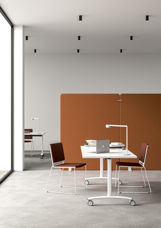 Con una flexibilidad extraordinaria, este modelo permite combinar dos mesas para obtener una con un diseño distintivo. Archimede con ruedas y tapa abatible es perfecto para amueblar espacios corporativos donde la versatilidad es estratégica, como salas de reuniones, salas de conferencias, entornos de formación y multimedia. Archimede en este modelo VL también proporciona una solución eficaz y elegante para el trabajo inteligente, transformando cualquier hogar en un espacio de oficina contemporáneo.