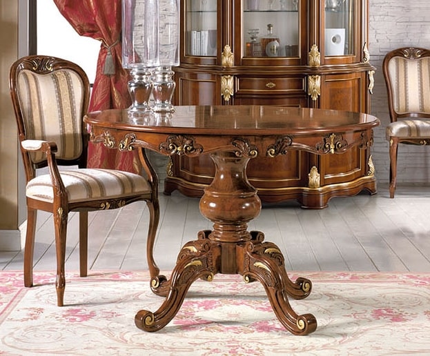 Mesa redonda con tapa extensible. Ideal para comedores de estilo clásico.